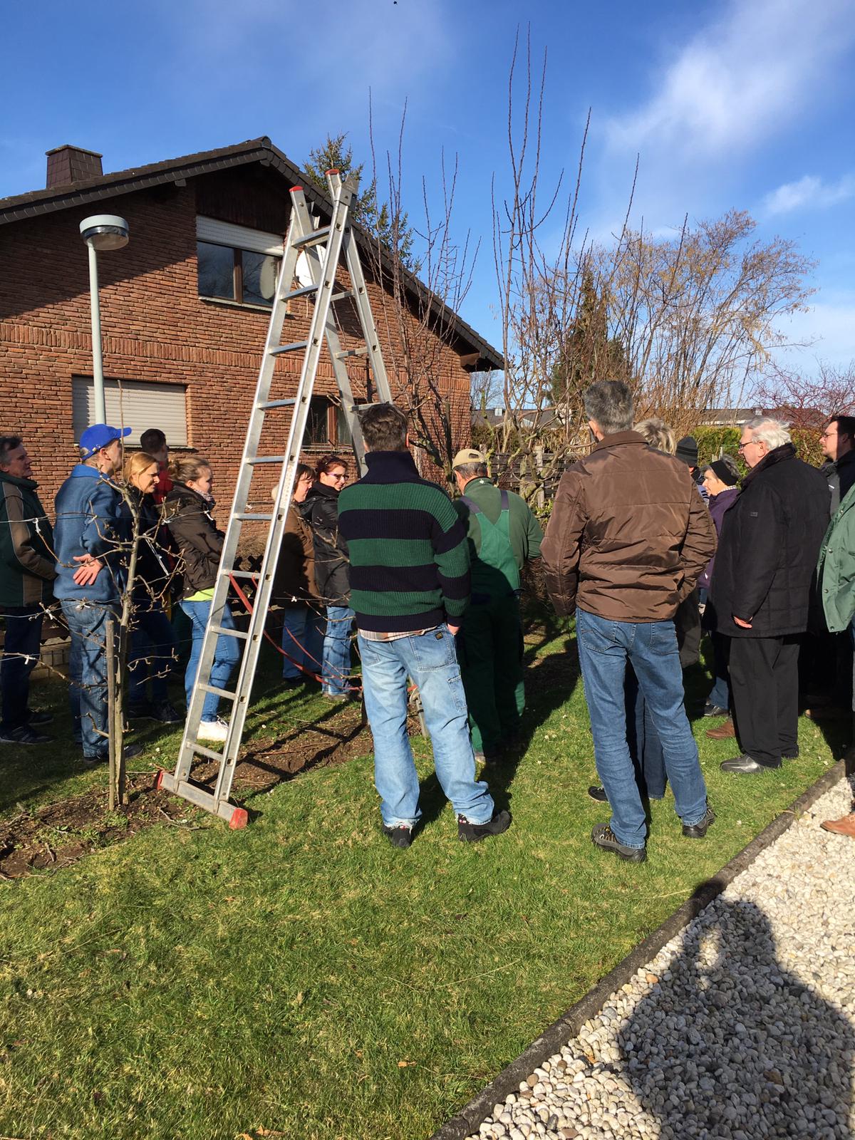 Trotz stürmischem Wetter war der Obstbaum-Schnittlehrgang beim Gartenbau- und Verschönerungsverein Lechenich sehr gut besucht. Über die Hälfte der Kursbesucher kamen nicht aus Erftstadt sondern aus Brühl, Wesseling, Frechen und Nörvenich und waren sehr zufrieden was ihnen im Vortrag und beim praktischen Obstbaumschnitt erklärt und vorgeführt wurde.